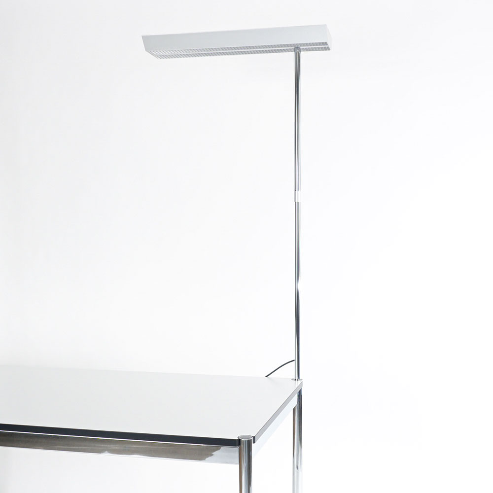 Tischlampe ECO LIT von Baltensweiler kompatibel mit USM Haller Tischen. Der effiziente schwenkbare Leuchtenkopf von ECO LIT erlaubt eine optimale Lichtführung im Arbeitsbereich.