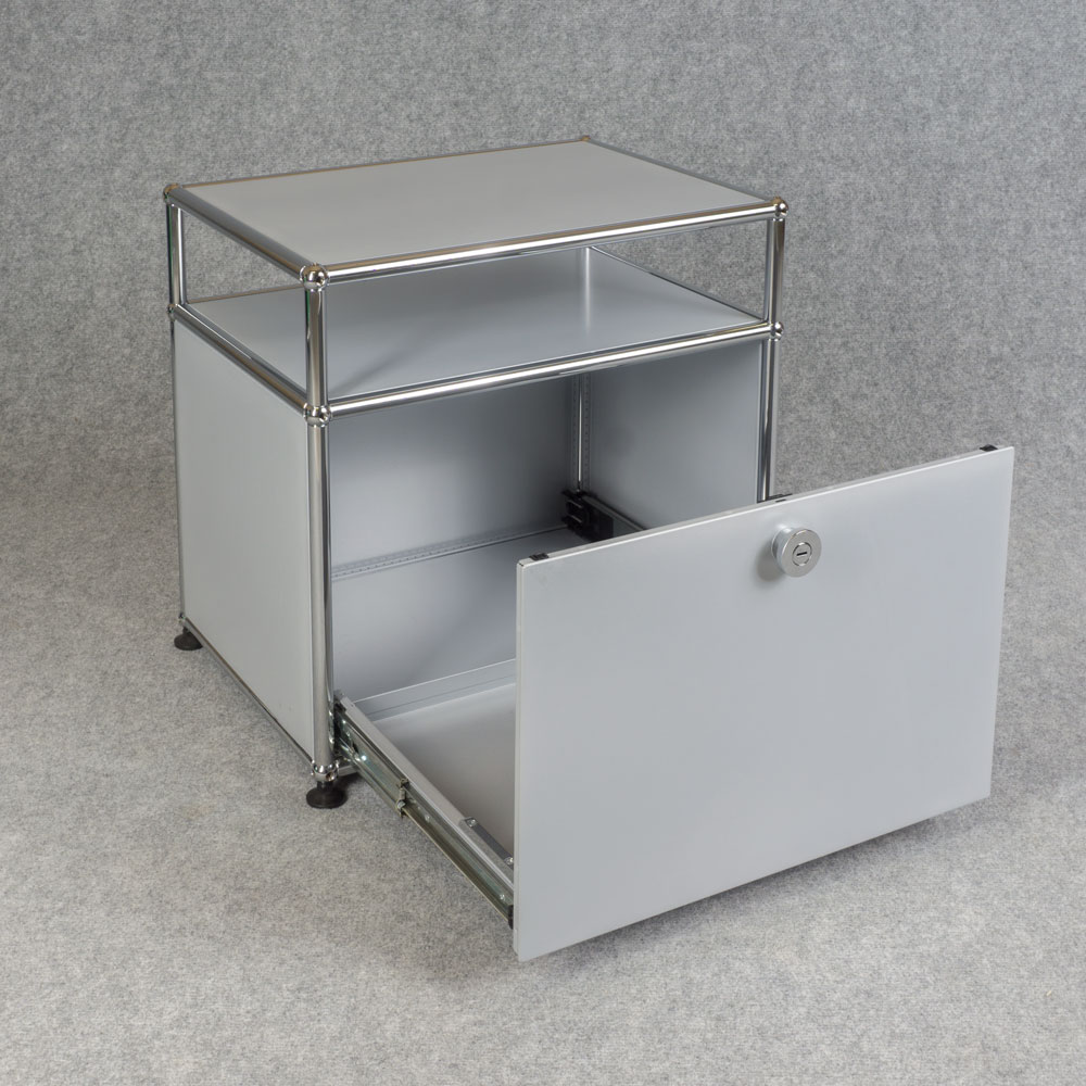 USM Haller Beistellmöbel mit einem Auszug. Zeitloses Design sowie langlebige Materialwahl.