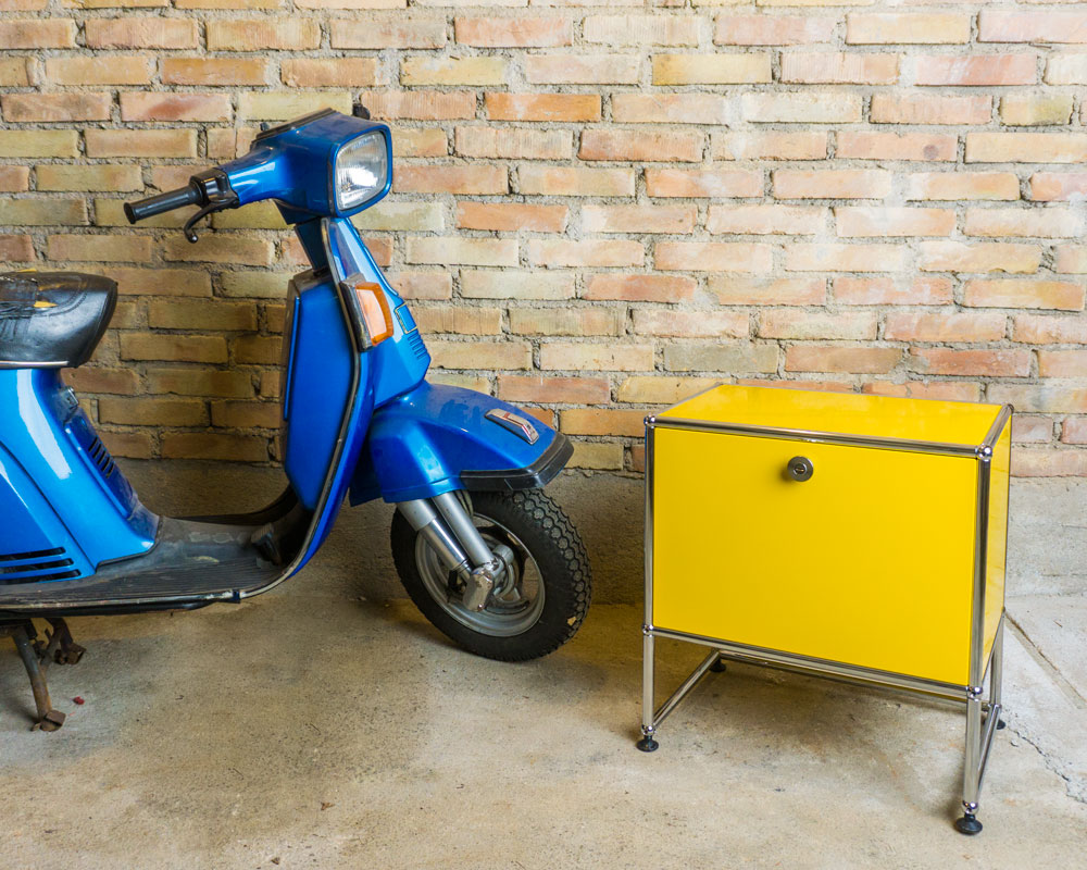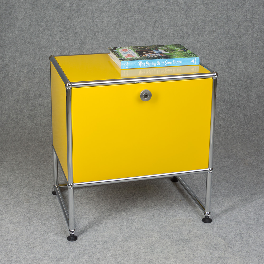 USM Haller Beistellmöbel mit einer Klapptüre. Zeitloses Design sowie langlebige Materialwahl.