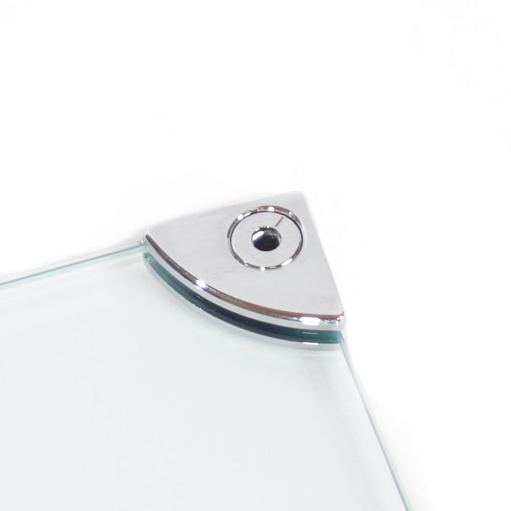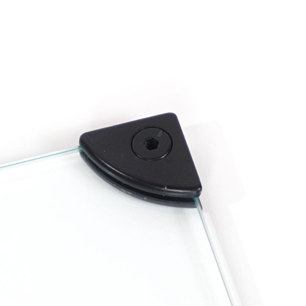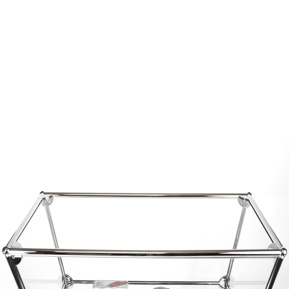 USM Haller Glaselement mit USM Haller Glashalter zur Befestigung.