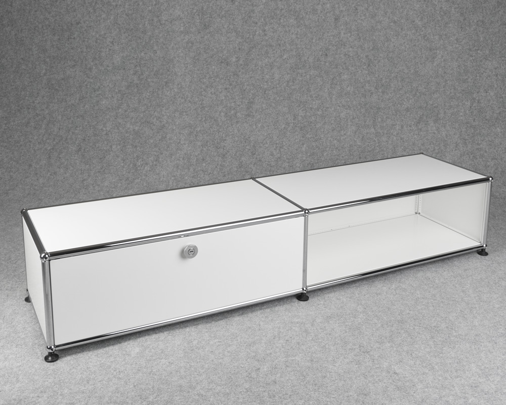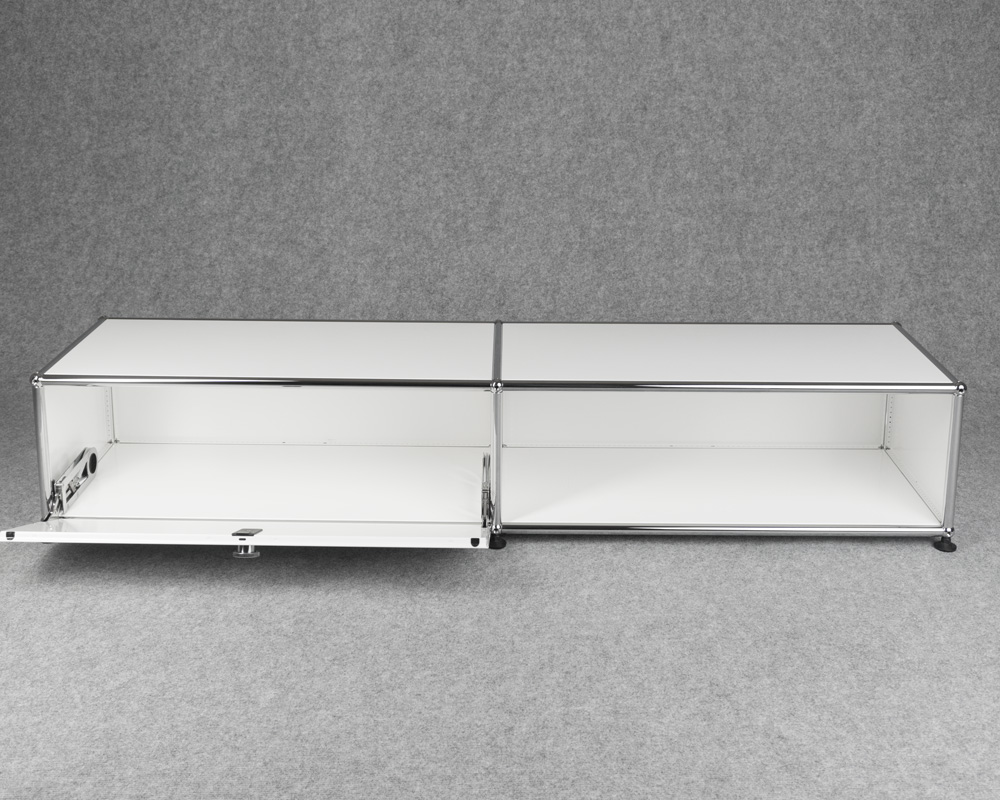 USM Haller Lowboard, Möbel mit einer Klapptüre in reinweiss. Zeitloses Design sowie langlebige Materialwahl.