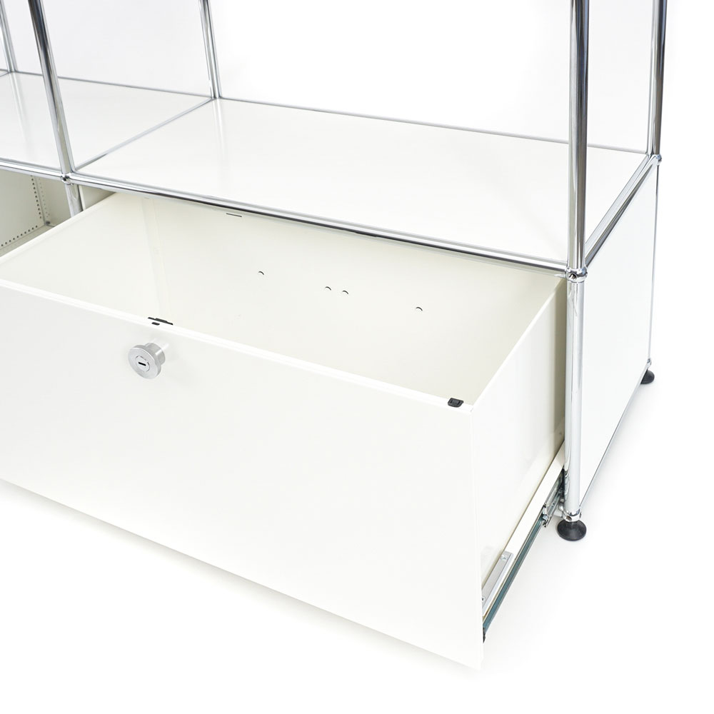 Mit einem USM Haller Möbel schaffst du Ordnung. Die flexible Bauweise passt sich ausserdem mit kleinem Umbauaufwand laufend deinen Bedürfnissen an. Das USM Haller Sideboard ist jederzeit erweiterbar und lässt sich sowohl Zuhause wie auch in gewerblichen Bereich in Räume bestens integrieren. Der Designer Fritz Haller ist für seine klare Linienführung sowie seine Zeitlosen Produkte bekannt.