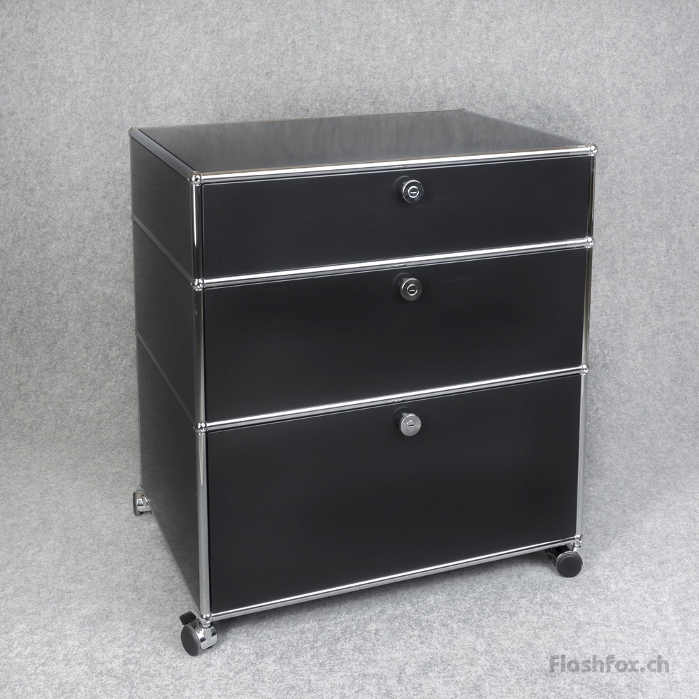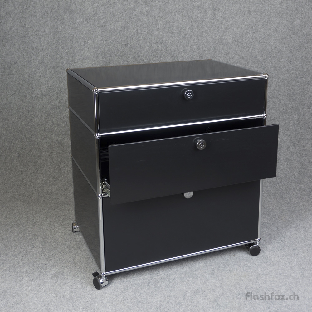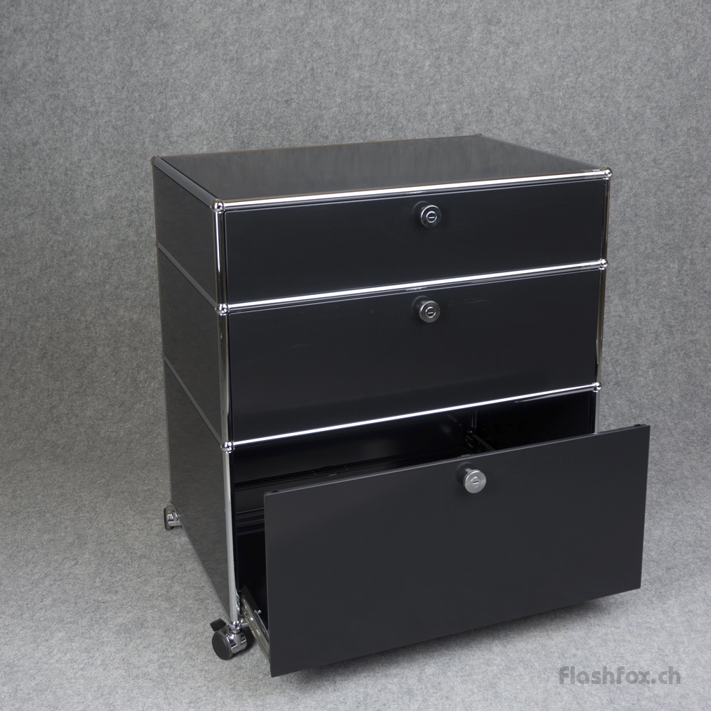 USM Haller Möbel mit drei Auszugschubladen in graphitschwarz. Zeitloses Design sowie langlebige Materialwahl.