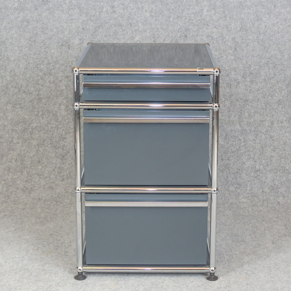 USM Haller Unterstellkorpus mit drei Schubladen. Zeitloses Design sowie langlebige Materialwahl.